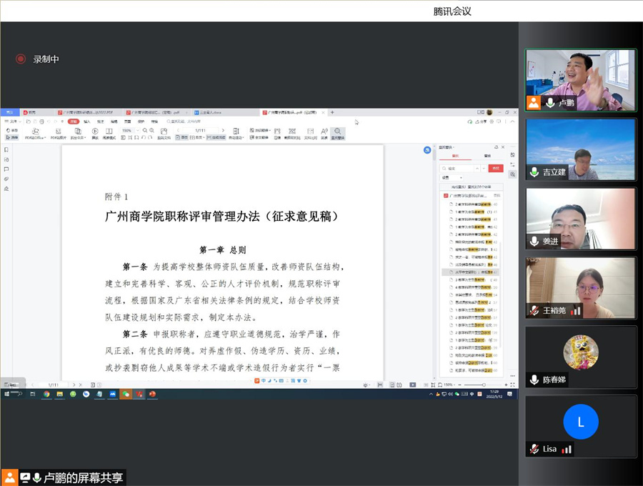 在太阳成集团tyc41183发展规划的指导下,卢鹏主任带领教研室全体还学习了《太阳成集团tyc41183科研绩效考核办法(2022)》和《太阳成集团tyc41183职称评审管理办法(意见稿)》。大数据技术教研室全体专任教师更为清晰地形成对中青年教师阶段性成长、长期性发展的目标与要求的认知,热烈的讨论了太阳成集团tyc41183对中青年教师成长的殷切期盼、充分鼓励、机遇与挑战,有目标、有方向,更快、更好地成长自我。