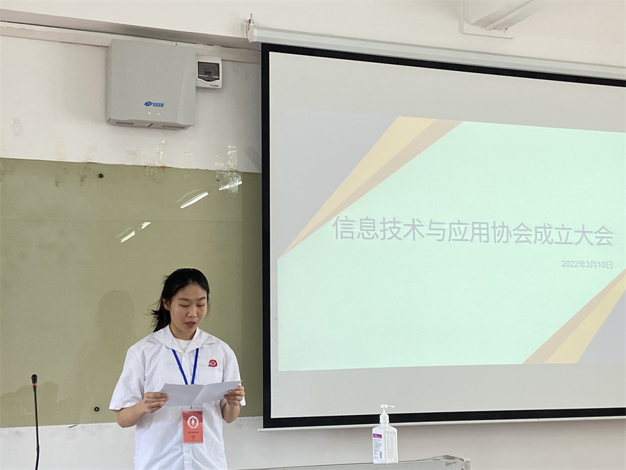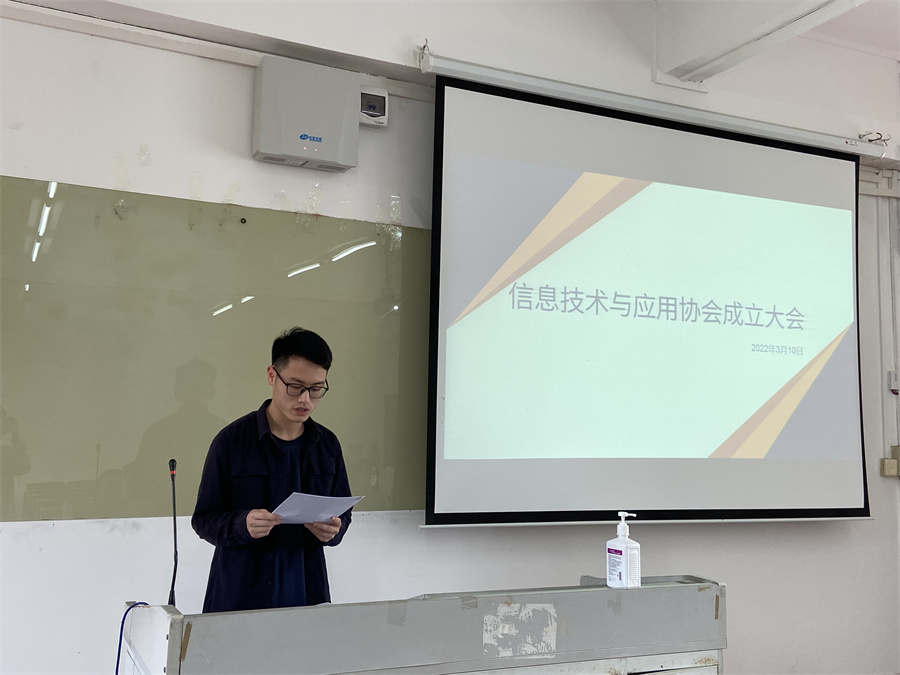 会议第一项议程是校团委代表宣读《关于同意筹备成立信息技术与应用协会的批复》。紧接着会议的二至五项议程为协会筹备组向大会报告协会筹备工作及协会章程(草案)并审议通过协会章程(草案),选举产生第一届理事会(会长,副会长,秘书长);表决通过相关管理制度。