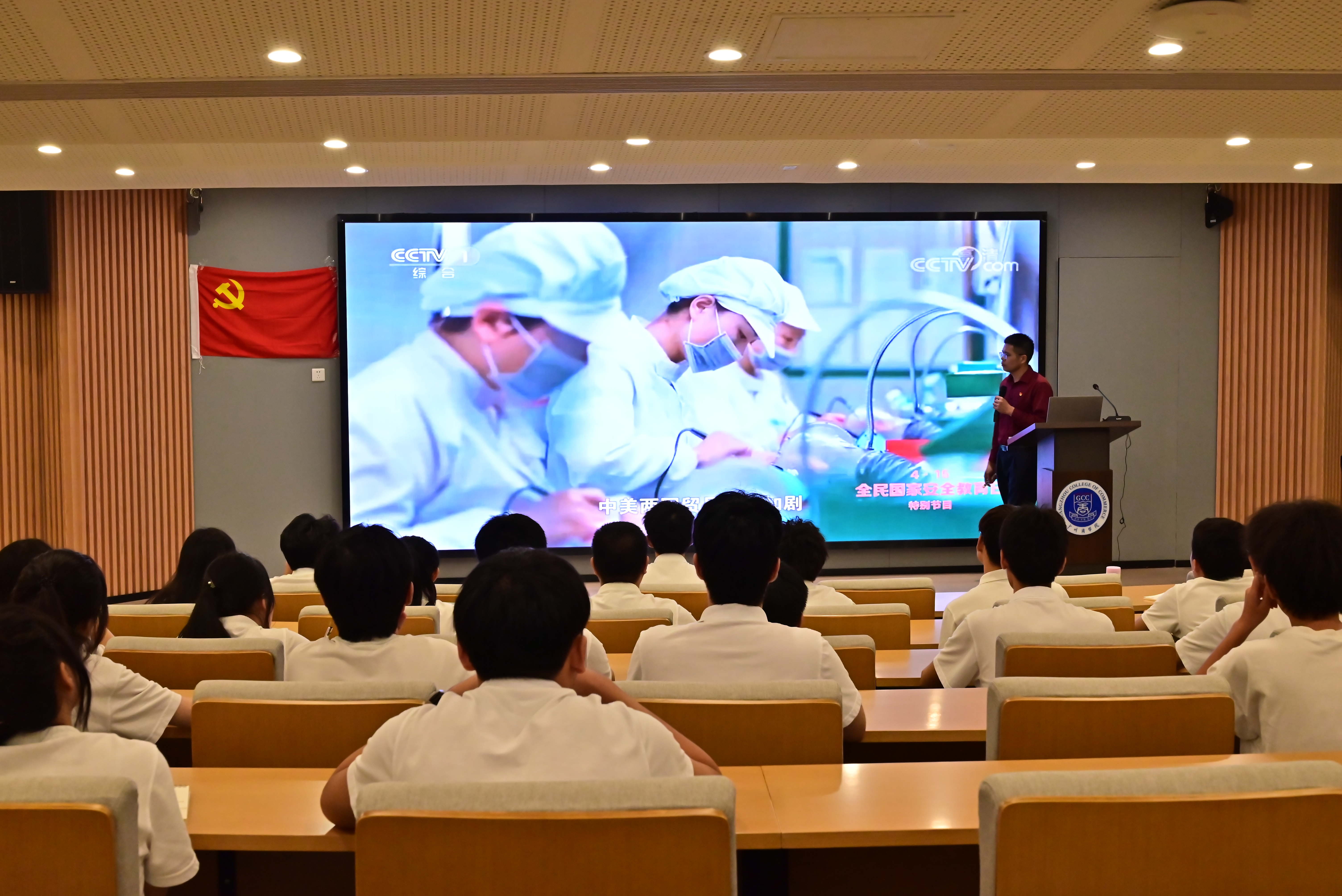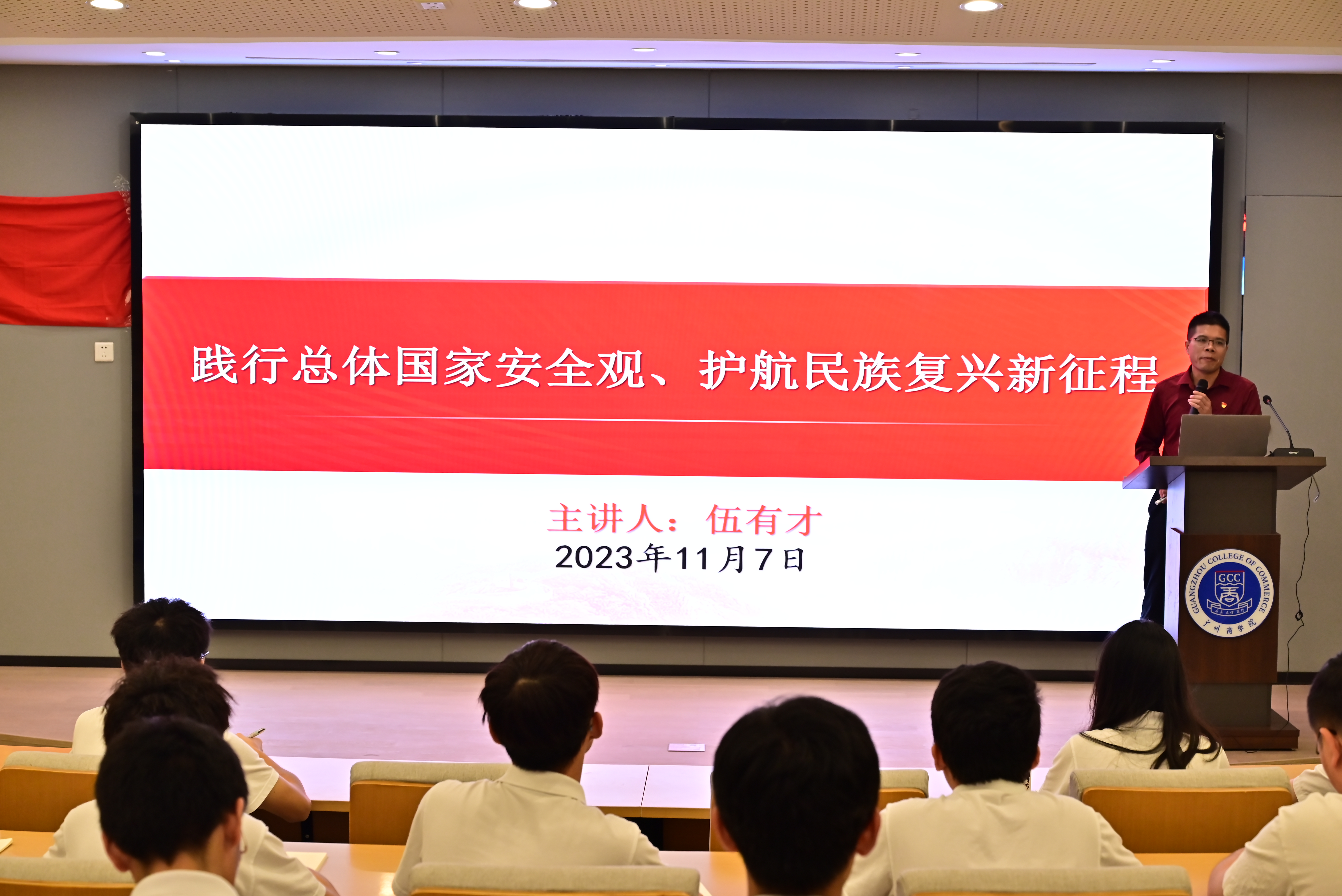 为加强对入党积极分子的思想引领,培养国家安全大局观念,帮助其进一步向党组织靠拢。11月7日晚,公司党总支在第八教学楼101报告厅开展2023-2024学年第一期分党校学员培训班第三讲,本次党课由广州商公司党群工作部副部长伍有才主讲。分党校培训班学员共计45人参与此次课程。