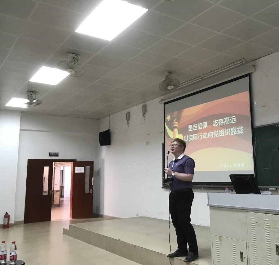 在讲到端正入党动机时,他自作打油诗:坚定信仰跟党走,团结群众办实事;甘于奉献不求利,不负韶华筑国梦。明确全体新生的入党动机,入党不为名不为利只为人民幸福、国家复兴。他还指出,入党不是停留在喊口号,而是入心入脑,思想行动同时入党。他提到:申请入党要及时,思想汇报不能少,争先创优要带头,党史学习要创优,为民办事要真诚,排忧解难在心头,严于律己是纪律,宽于待人是要求。