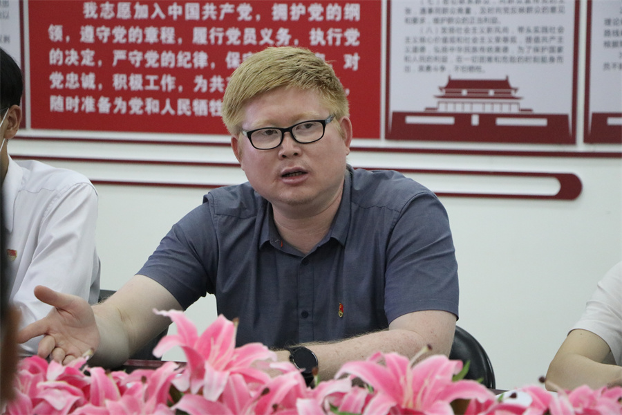 座谈会上,关树基向青年员工代表们分享了《习近平与青年老员工朋友们(第二辑)》、习近平总书记在4月25日考察中国人民大学重要讲话精神和习近平总书记在庆祝中国共产主义青年团成立100周年大会重要讲话精神的思想精髓和主要内容。他还分享了自己观看庆祝中国共产主义青年团成立100周年大会直播的心得体会。他分享到:“作为一名人民教师,一名共产党员,一名党的基层干部,做好‘为党育人,为国育才’工作是我神圣的使命。站在时代发展的潮头,我将牢记初心使命,牢记立德树人根本任务,时刻保持仁爱之心,甘做一颗永不生锈的螺丝钉,带领广大青年员工向历史学习、向英雄学习、向人民学习,向万千青春榜样学习,自觉听从党和人民召唤,胸怀‘国之大者’,担当使命任务,成长为有理想、敢担当、能吃苦、肯奋斗的新时代好青年,到祖国最需要的地方建功立业。”他强调中国青年在新民主主义革命时期、社会主义革命和建设时期、改革开放和社会主义现代化建设新时期、中国特色社会主义新时代奋发有为,积极贡献,充分彰显了青年的责任担当。他勉励参会青年员工代表要时刻不忘党的群众路线,不忘习近平总书记重要讲话精神,充分团结青年、凝聚青年、服务青年,不做青年“官”,只为青年友,做好全心全意为同学服务的工作。