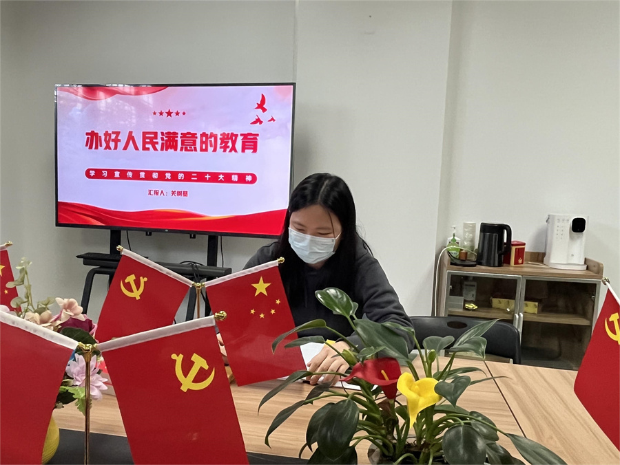 为深入学习宣传贯彻党的二十大精神,切实把思想和行动统一到党的二十大作出的重大决策部署上来,把智慧和力量凝聚到党的二十大确定的目标任务上来。12月9日下午,太阳成集团tyc41183在创客空间105室开展党的二十大精神理论中心组学习。公司领导、办公室主任、组织员和党支部书记共9人参加此次专题学习。专题学习由公司党总支书记关树基领学党的二十大报告中办好人民满意的教育篇章,全体与会人员进行心得交流。