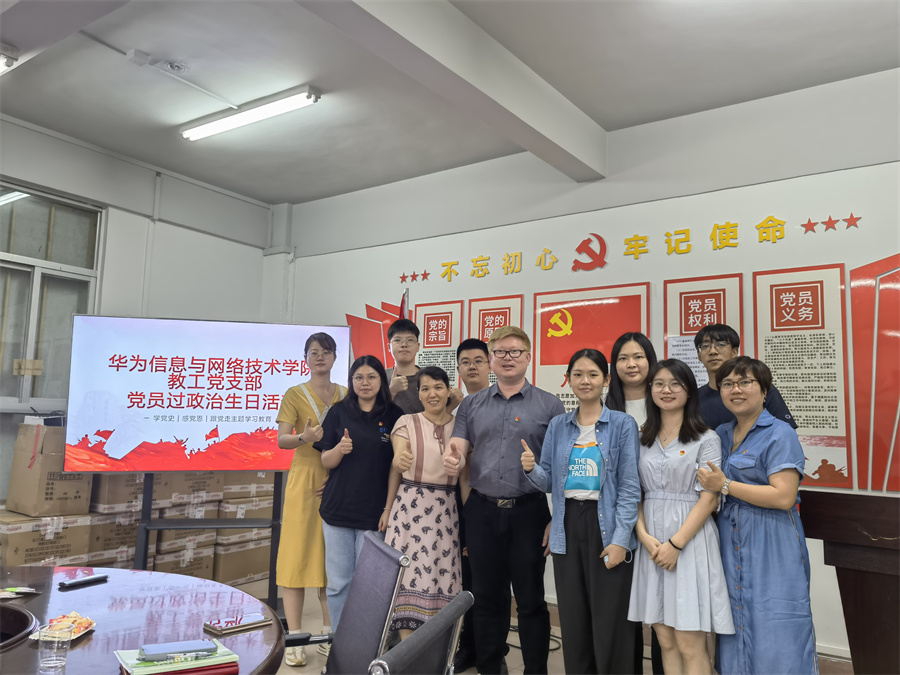 为引导广大党员强化身份意识、宗旨意识和责任意识,把教育管理党员的活动更好地融入生活、融入日常,增强党员的组织归属感和身份认同感。6月23日下午,华为信息与网络技术公司教工党支部在艺术楼105党团活动室开展主题党日活动。公司党总支书记关树基、教工党支部书记黄静以及全体教工党员共计12人一同过“政治生日”,忆入党初心。党日活动分为四个环节进行,一是第一议题开展党章学习;二是“谈初心、讲感悟”;三是“颁发贺卡、纪念品”;四是“重温入党誓词”。