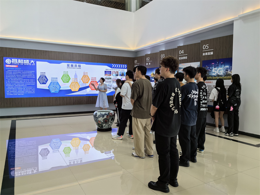 在游学活动中,东莞市昌和盛大集团的行政助理代表公司欢迎大家的到来,带领老师和同学们参观公司展厅,讲解公司的历史、现状和发展规划以及公司的主营业务模式、企业文化和荣誉资质等。在参观过程中,助理和同学们交流互动,帮助同学们了解电商行业的最新动态和趋势以及公司在市场竞争中的优势和挑战。