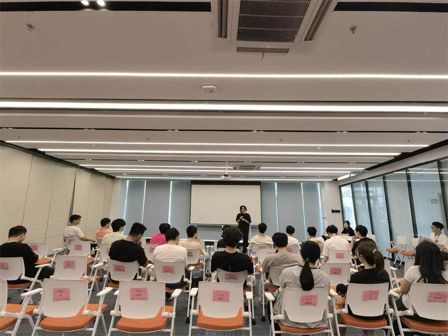 参观结束后,雷邵媛组织参观员工开展了一场座谈会。座谈会上,雷邵媛简单介绍了近期在公司开展实训招聘情况,并对已在校内实训员工工作予以肯定。