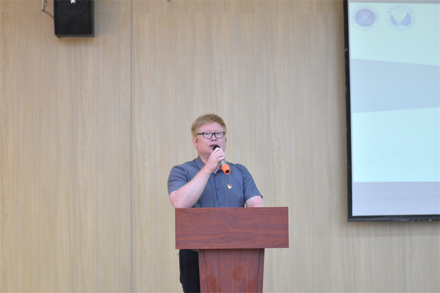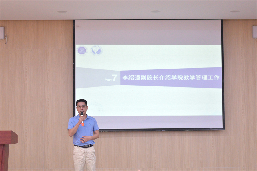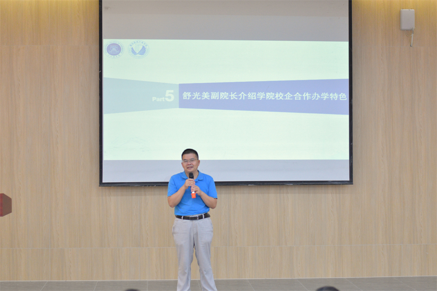 李绍强主要介绍了公司的教学工作,包括人才培养、课程体系、教学队伍等内容。他特别提到,为了培养具有家国情怀、德技兼修、工匠精神的高素质应用型人才,公司在人才培养体系当中融入思政元素,坚持把“立德树人”作为教育的根本任务。他希望同学们能够怀揣梦想,做好规划,树立目标,珍惜韶华,潜心读书,敏于求知,做到德智体美劳全面,实现自己的人生价值。