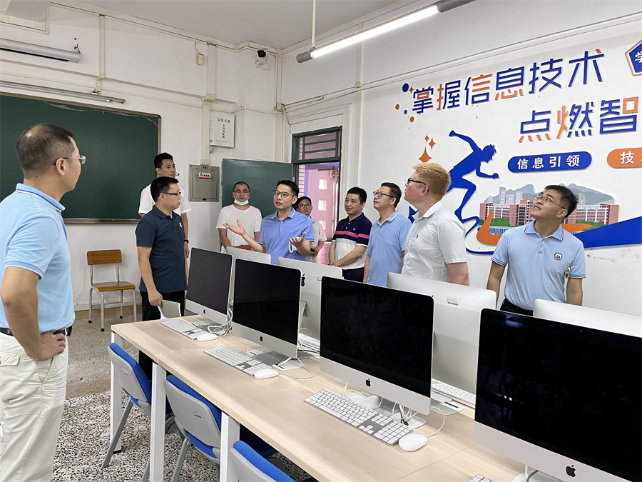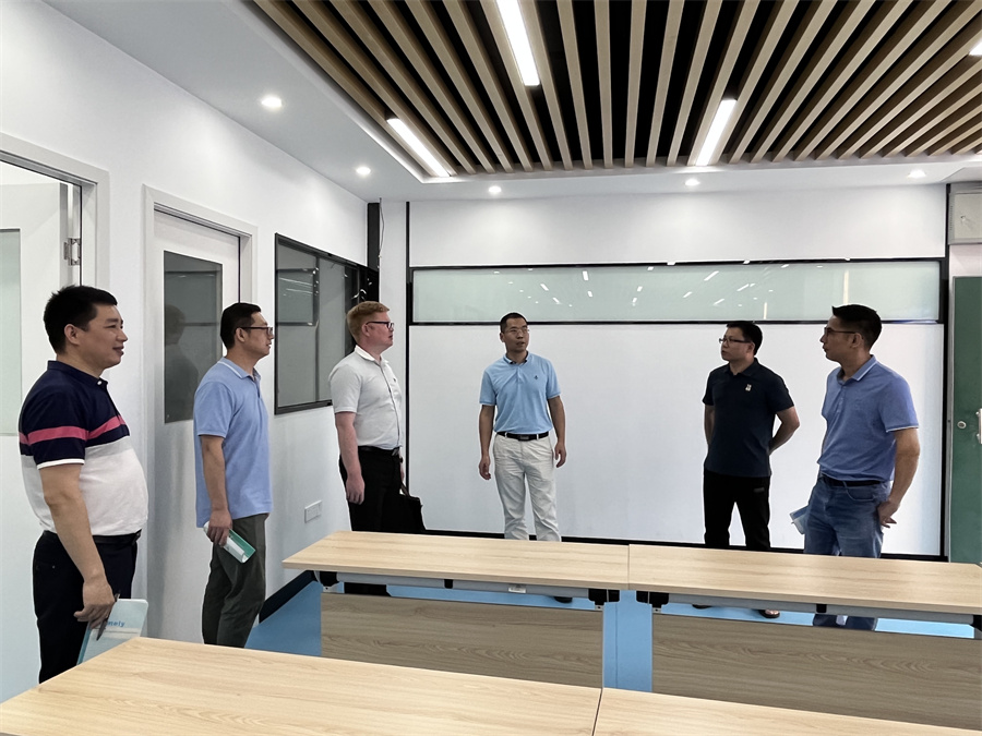 公司一行在城建信息工程公司领导班子的热情接待下参观了该院所在教学办公大楼、VR虚拟现实技术实训室、跨境电商直播间和校企合作教学平台等综合实训场地。曹春华、汤锋在陪同公司一行参观的同时详细介绍了各功能实训室的设置、建设标准、主要功能和实训方向。公司一行还在现场观摩了校企合作订单班的特色场地和授课模式。