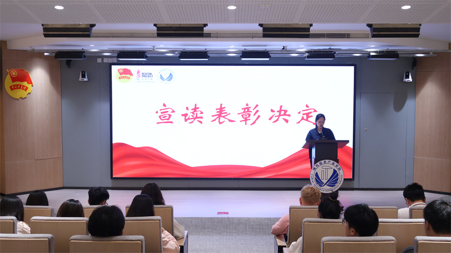 司徒洛琳宣读表彰决定,授予23级数据科学与大数据技术1班支团支部等3个集体“先进团支部”称号;授予23级计算机科学与技术4班等4个集体“优秀班集体”称号;授予黄铁冰同学“优秀员工骨干标兵”称号;授予程芊芊、陈玲玲等60名同学“优秀共青团员”称号;授予戴毅锋、陈俊润等78名同学“优秀员工骨干”称号;授予谭英正、钟松清等24名同学“优秀固定志愿者”称号;授予陈栩莹、陈杰威等10名同学“优秀员工助理”称号。