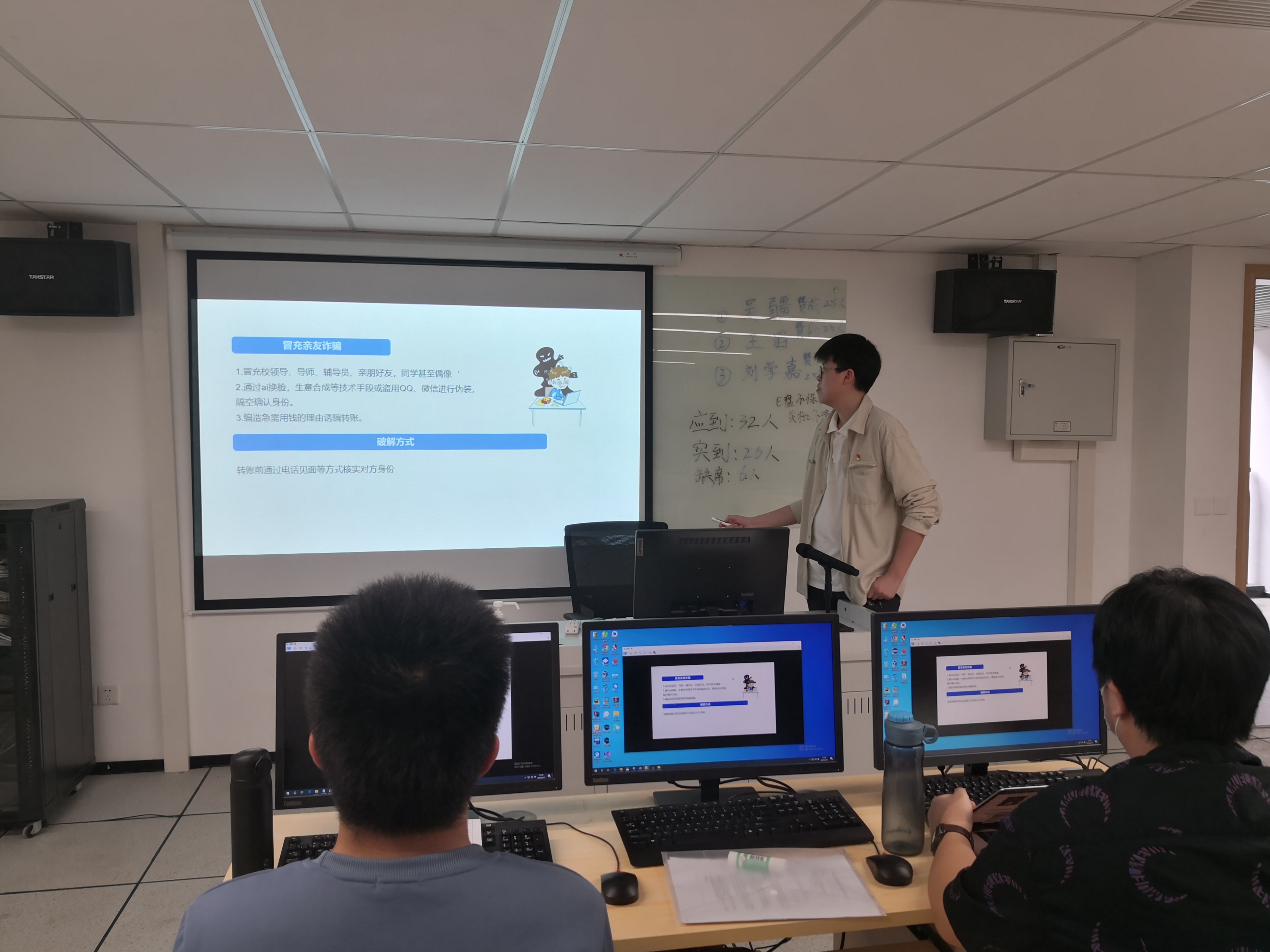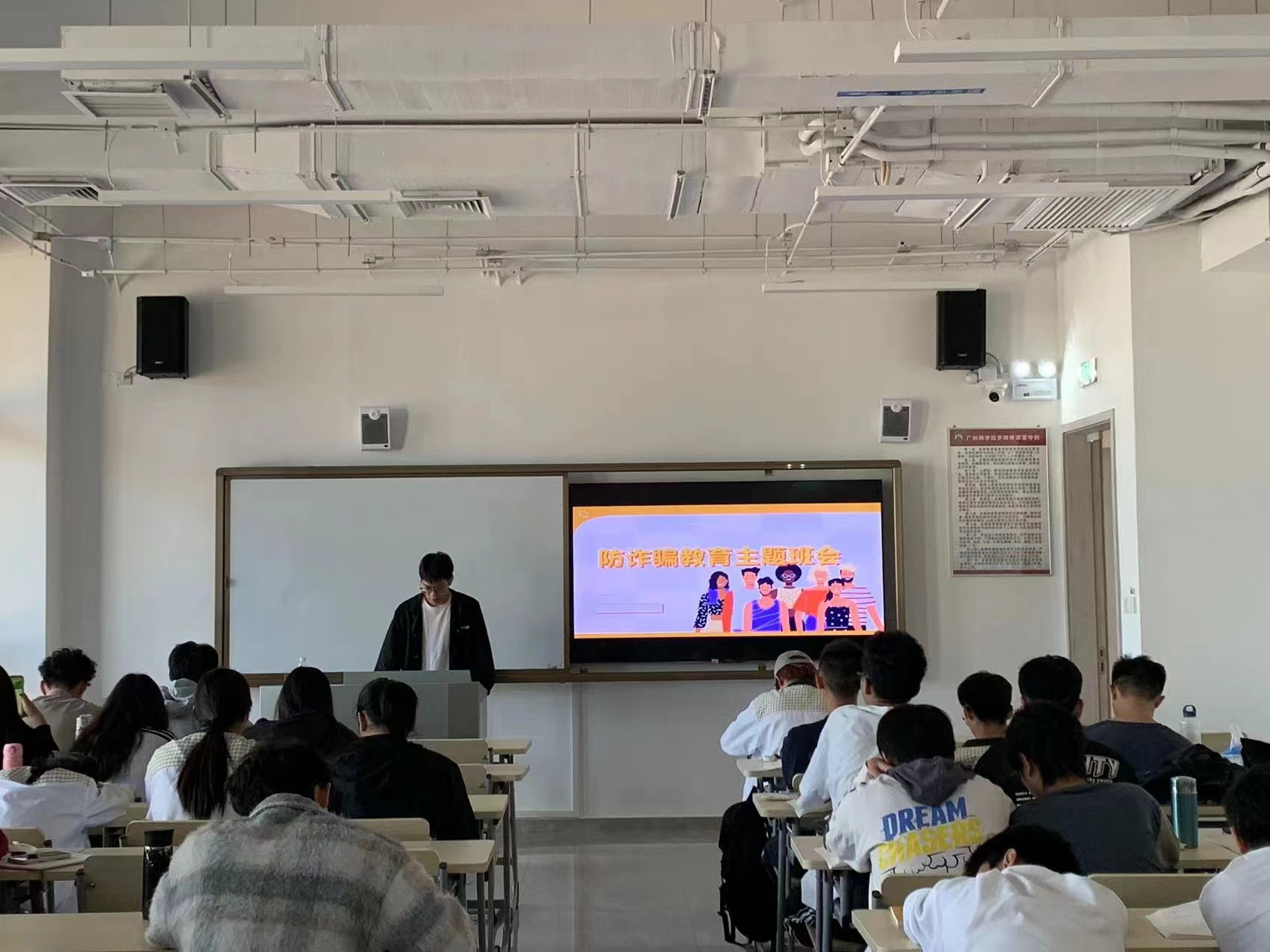 同时,本次主题班会结合日常接触到的真实案例和大公司园中具有代表性的案件类型,向同学们介绍了防诈骗的手段和策略,帮助同学们掌握安全知识,了解身边常见的诈骗行为,增强防范意识和辨识能力,提醒同学们发现骗局应及时向辅导员及警方求助。
