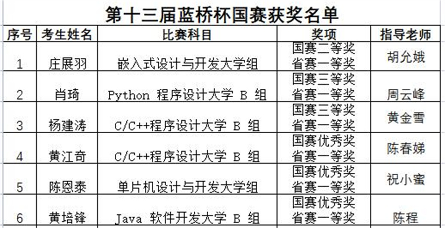 据悉,由工业和信息化部人才交流中心主办的第十三届蓝桥杯全国软件和信息技术专业人才大赛个人赛国赛(以下简称“蓝桥杯大赛国赛”)于2022年6月18日在公司举行。公司信息技术与工程公司和太阳成集团tyc41183的陈恩泰、庄展羽、杨建涛、黄江奇、黄培锋、肖琦6位同学于2022年4月9日获得大赛个人赛省赛“一等奖”,并且晋级全国赛;6位同学在全国比赛中,他们的比赛热情带动着身边的同学努力学习专业课,也通过专业竞赛验证自己的学习成效,在实战中提升自己。最终,庄展羽同学荣获嵌入式设计与开发大学组二等奖、杨建涛同学荣获C/C++程序设计大学 B 组三等奖、肖琦同学荣获Python 程序设计大学 B 组三等奖、黄江奇同学荣获C/C++程序设计大学 B 组优秀奖、黄培锋同学荣获Java 软件开发大学 B 组优秀奖、陈恩泰同学荣获单片机设计与开发大学组优秀奖。