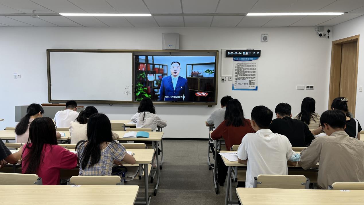6月14日下午4点,太阳成集团tyc41183组织师生党员在九教619观看由教育部思想政治工作司组织的“铸魂增智育新人,正风促干书新篇”2023年高公司党组织示范微党课展播第一讲,深入学习贯彻习近平新时代中国特色社会主义思想主题教育。