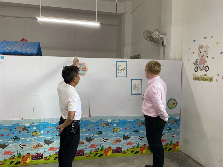 公司一行还在李巽安和刘志昌的陪同下参观了福新小学教学场地、住宿环境、厨房等校内场所和村委会。参观期间,关树基针对福新小学原有损坏墙绘的部分提出修补增色意见,并在现场提出本次下乡绘制新式墙绘方案的建议。公司一行还在李巽安的陪同下参观了福新村的稻虾养殖基地。