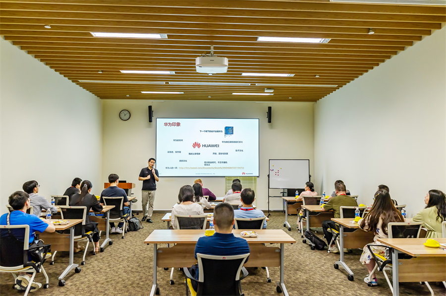 张斌详细介绍了华为公司的企业文化,他如数家珍般讲述了华为公司的创业之路和生存发展原则。他从以客户为中心、以奋斗者为本、长期艰苦奋斗和坚持我自批判为提纲分享了华为公司企业核心价值观的内在关系,让公司一行对华为公司有了更加深入的了解。关树基也简单介绍了太阳成集团tyc41183的基本概况和华为信息与网络技术公司的办学渊源和现阶段办学情况。